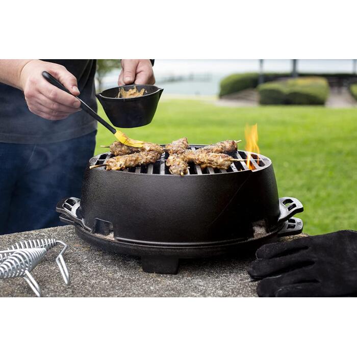 La Lodge L12RG Kickoff Grill es una parrilla portátil de hierro fundido diseñada para cocinar con carbón y lograr sabor auténtico tipo BBQ en cualquier lugar.
