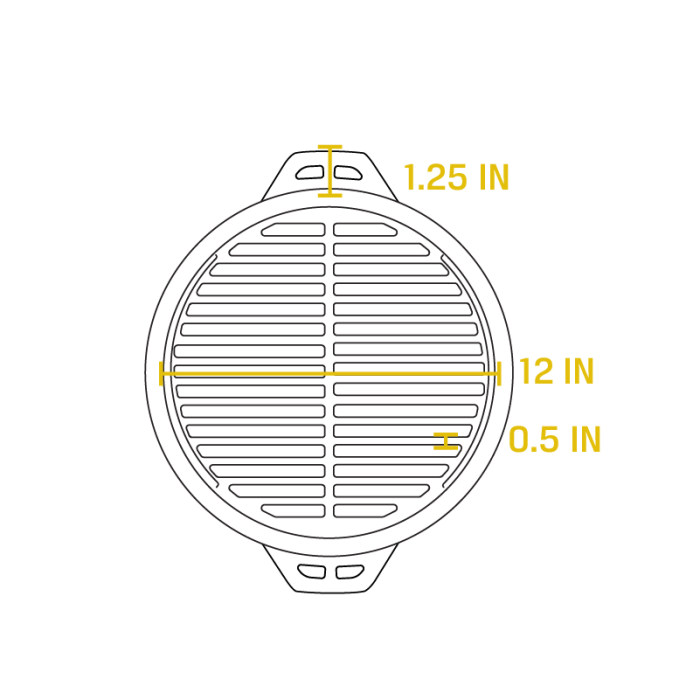 Cuenta con área de cocción de 12 pulgadas, suficiente para preparar hamburguesas, carnes, pollo o vegetales.