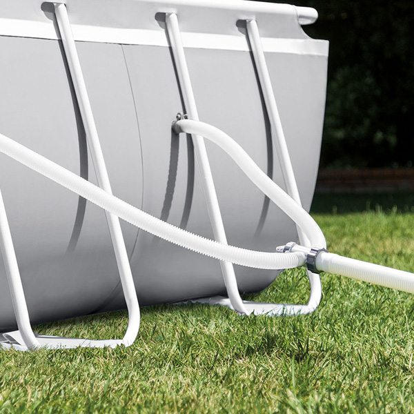 La estructura metálica proporciona una firmeza superior frente a piscinas inflables, mientras que las paredes reforzadas están pensadas para resistir el uso continuo y la presión del agua. Su formato rectangular aprovecha mejor el espacio del patio o jardín, facilitando la circulación y el disfrute simultáneo de varios usuarios.