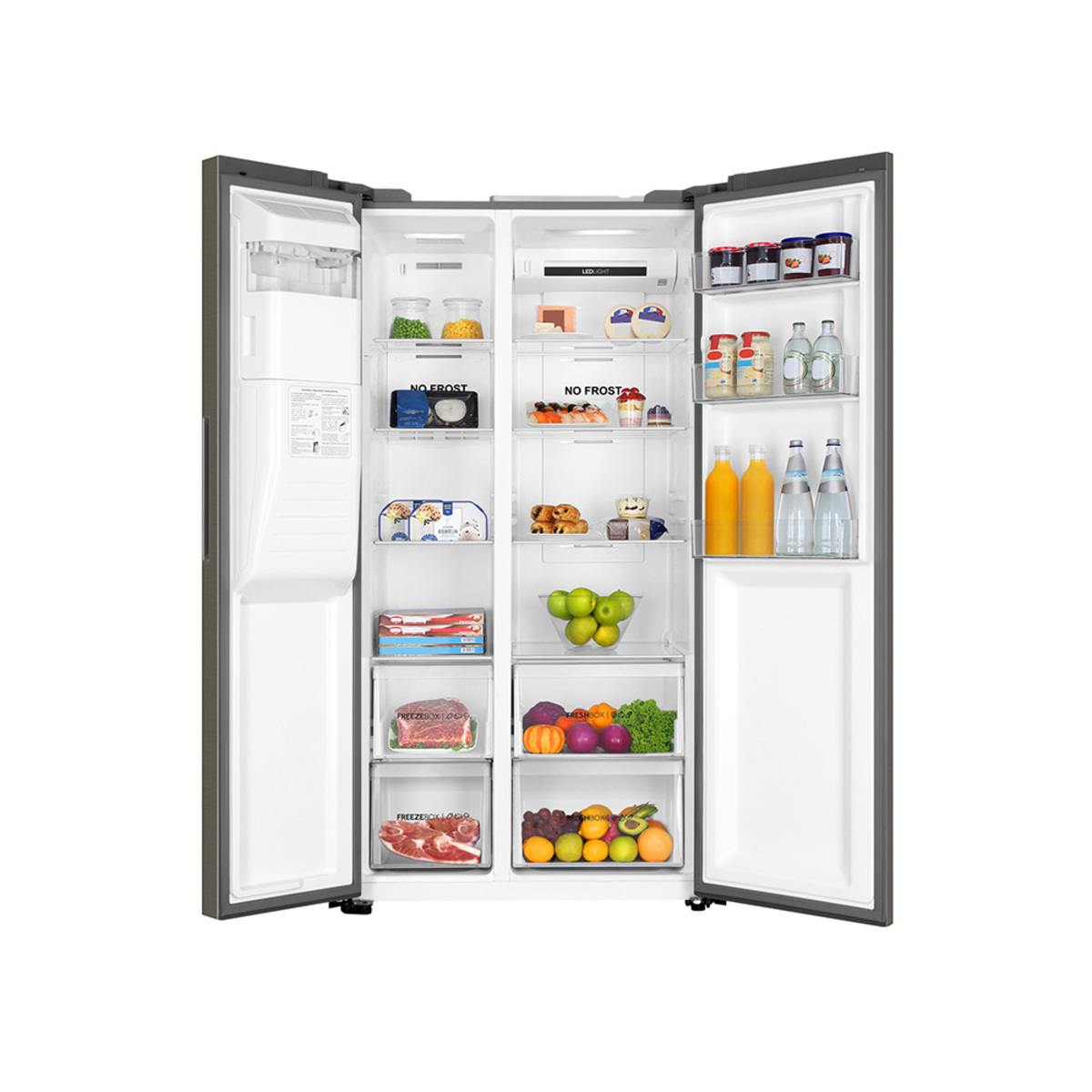 El Refrigerador Haier HSM541HMNSS0 Side by Side de 19 pies³ (521 L) es ideal para quienes buscan un electrodoméstico de gran capacidad, con diseño moderno y distribución eficiente. Su configuración Side by Side permite acceder cómodamente a los alimentos, mientras el sistema No Frost evita la formación de escarcha y mantiene los productos frescos por más tiempo.