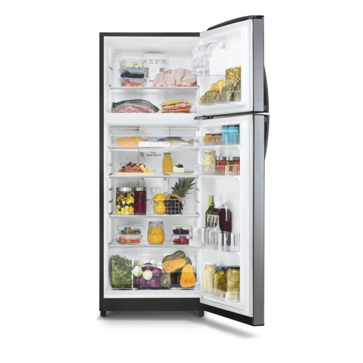 Gracias a su sistema de descongelado automático, mantiene los alimentos frescos por más tiempo y elimina la necesidad de descongelaciones manuales. Además, cuenta con estantes de vidrio templado y compartimentos ajustables para una mejor organización.