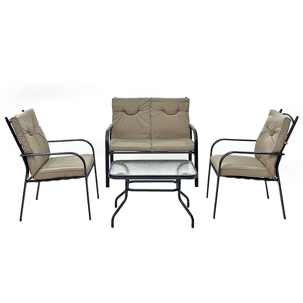 La Sala 2-1-1 Tokoa con Cojines y Mesa Café combina confort, estilo y resistencia en un solo conjunto. Su estructura de metal negro, cojines en tela beige y mesa con vidrio templado claro aportan un toque de elegancia y modernidad a cualquier espacio.