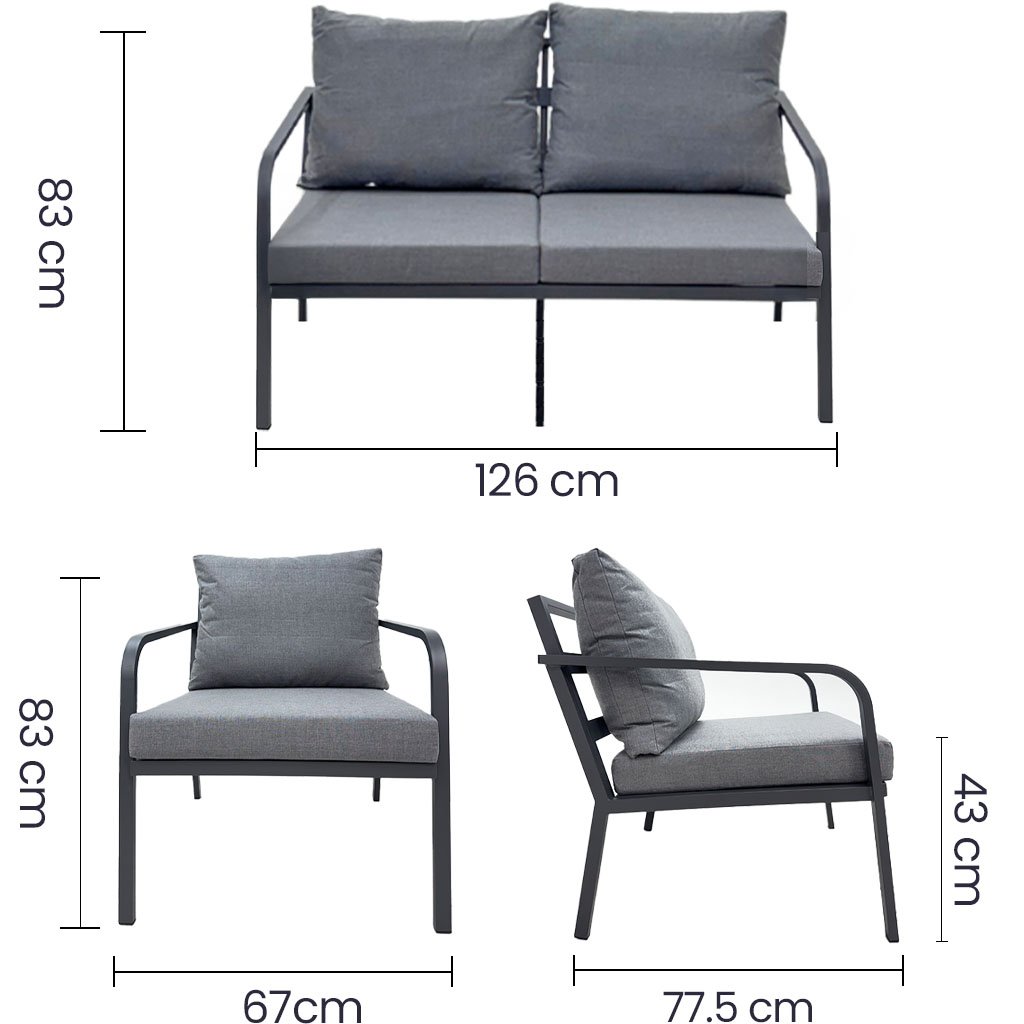 Porque ofrece la durabilidad del aluminio anticorrosivo con la comodidad de una sala completa, perfecta para exteriores y con materiales diseñados para aguantar uso intensivo y clima variable.