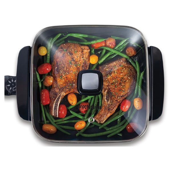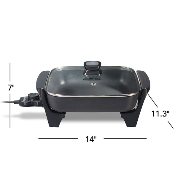 El sartén eléctrico de 12 pulgadas Proctor Silex modelo 38526MN es una solución práctica para cocinar de forma cómoda, rápida y sin depender de una cocina convencional. Perfecto para preparar desayunos, almuerzos o cenas completas, ofrece una distribución uniforme del calor para resultados consistentes.