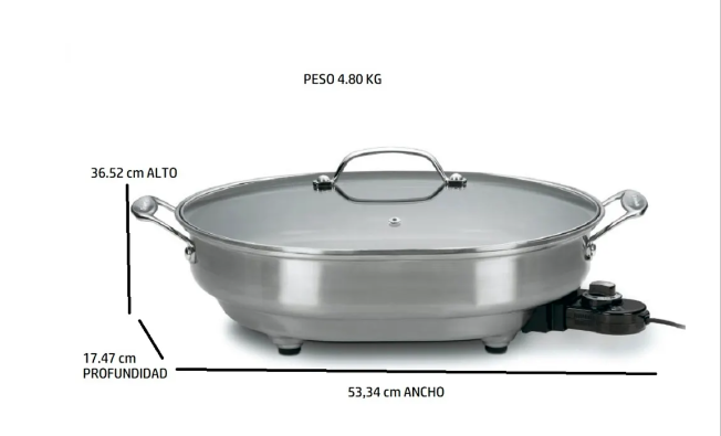 Cuenta con una amplia superficie ovalada de cocción antiadherente de aproximadamente 12” x 15”, perfecta para preparar carnes, vegetales, desayunos y comidas completas para toda la familia.