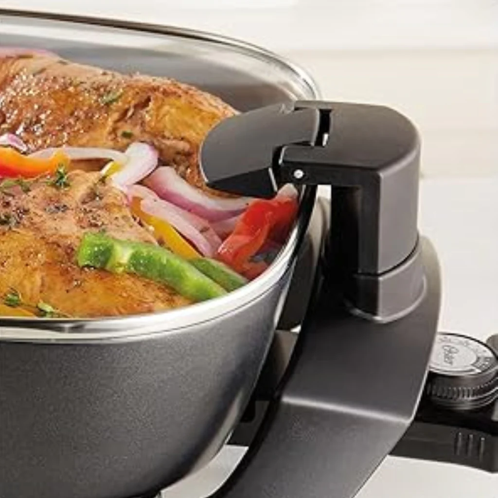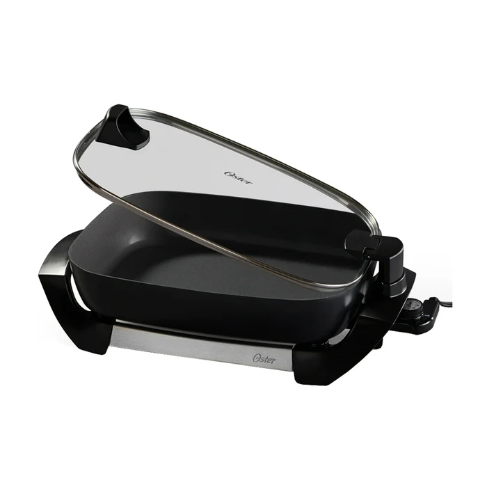 El Oster CKSTSK16H es un sartén eléctrico de 16 pulgadas pensado para cocinar más, en menos tiempo y con limpieza sencilla. Su recubrimiento DiamondForce ofrece un antiadherente reforzado y durable que evita que los alimentos se peguen y facilita la limpieza. La tapa de vidrio templado permite ver la cocción sin perder calor, mientras el control de temperatura removible te da el punto exacto para saltear, freír, dorar o guisar.