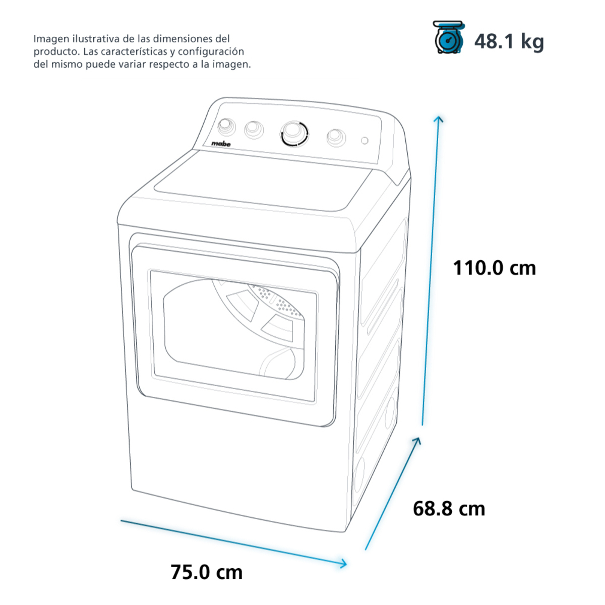 Capacidad: 7.2 cu.ft. (22 kg)