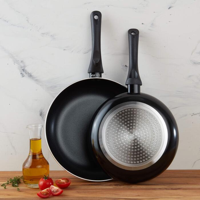 Su base compatible con cocinas de inducción garantiza un calentamiento rápido y ahorro energético, mientras que el recubrimiento antiadherente facilita la cocción con menos aceite y una limpieza sencilla. Un set pensado para el uso diario, resistente y funcional, con el respaldo de la calidad Monix.