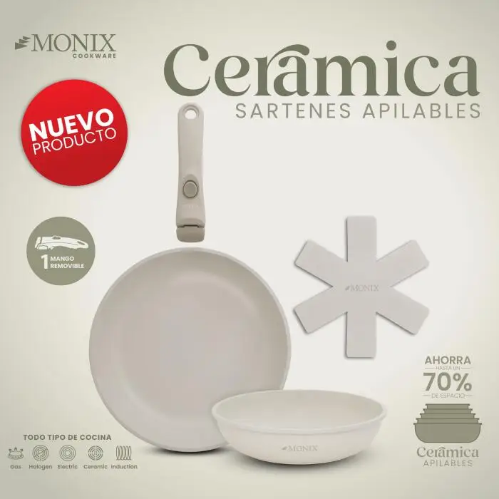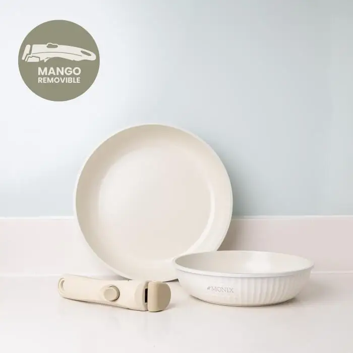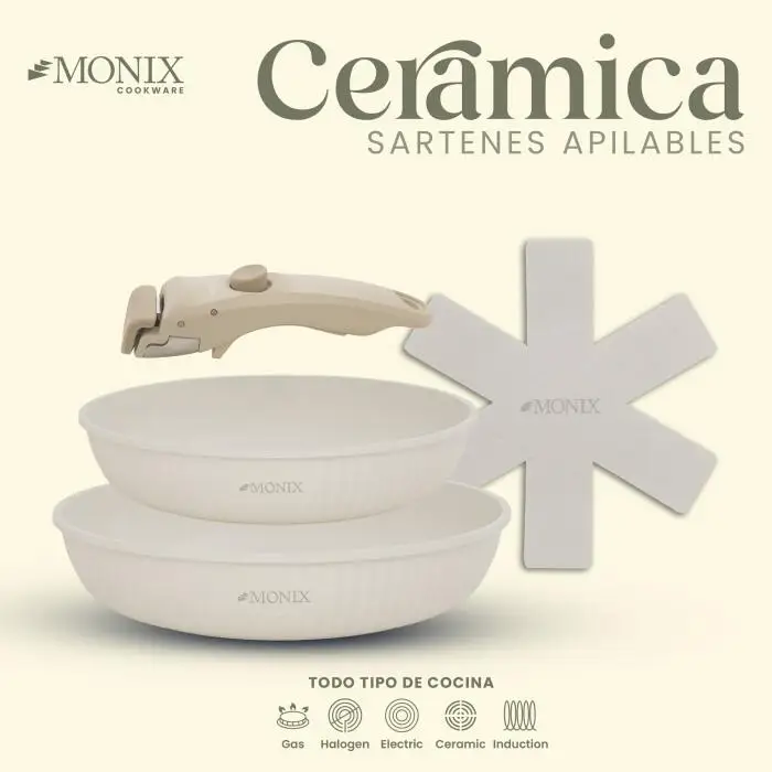 El Set de Sartenes Monix MC-JS4-C de 4 Piezas combina la elegancia del acabado crema con la durabilidad de la cerámica antiadherente. Su diseño moderno y funcional se adapta a cualquier estilo de cocina y te permite preparar alimentos de forma más saludable y sin complicaciones.