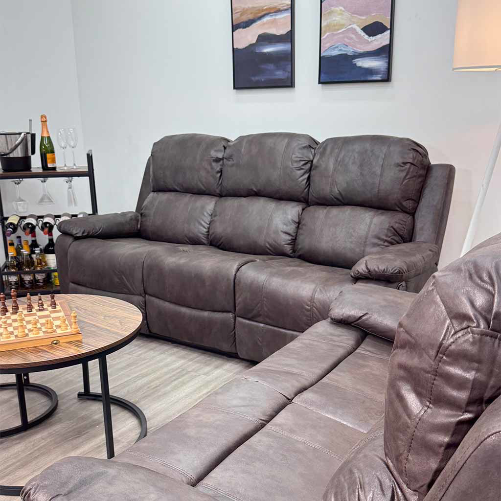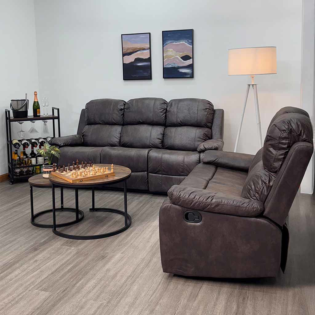 Sofá Triple Reclinable Tokoa Café en Microcuero