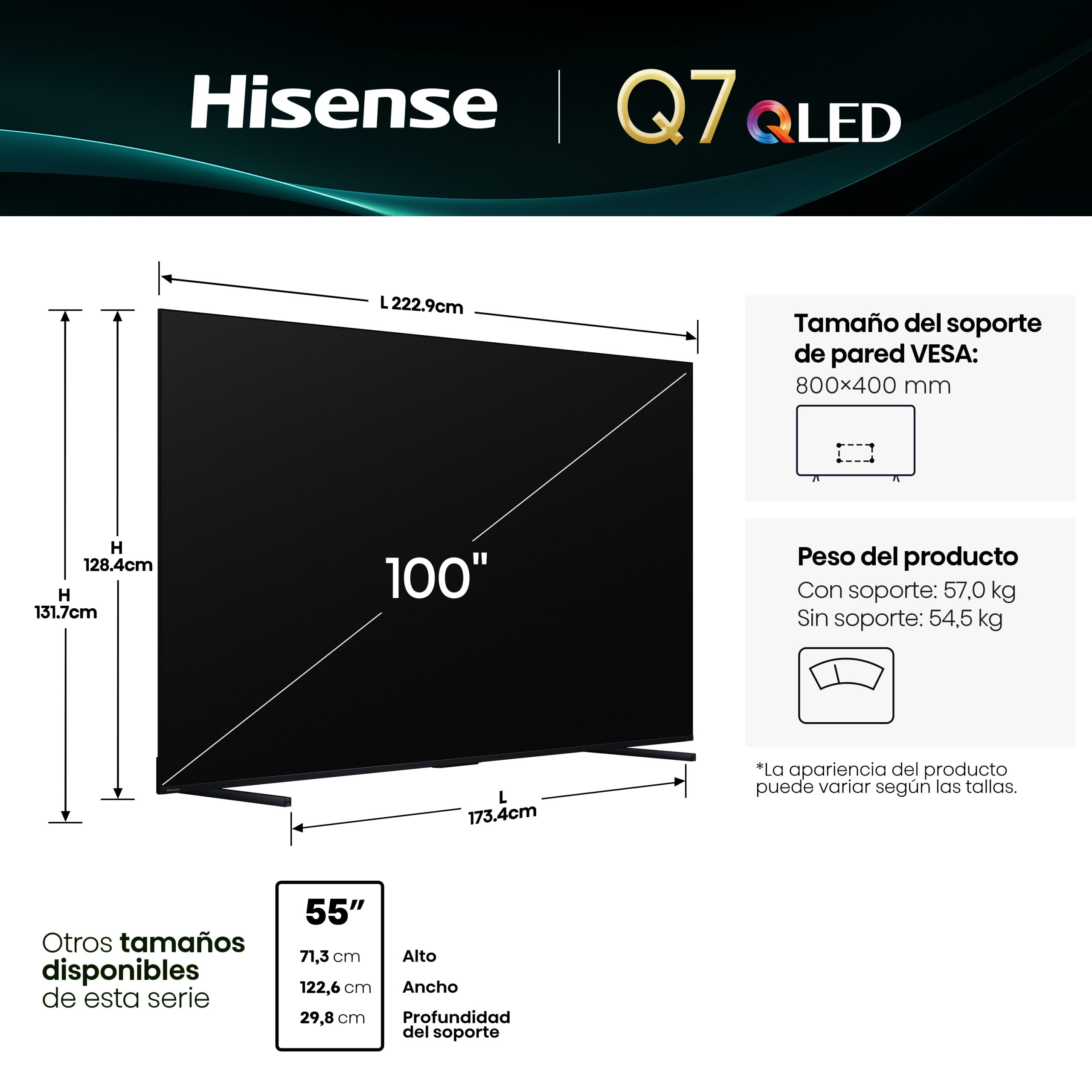 Dimensiones sin base: 2229×1284×95 mm
