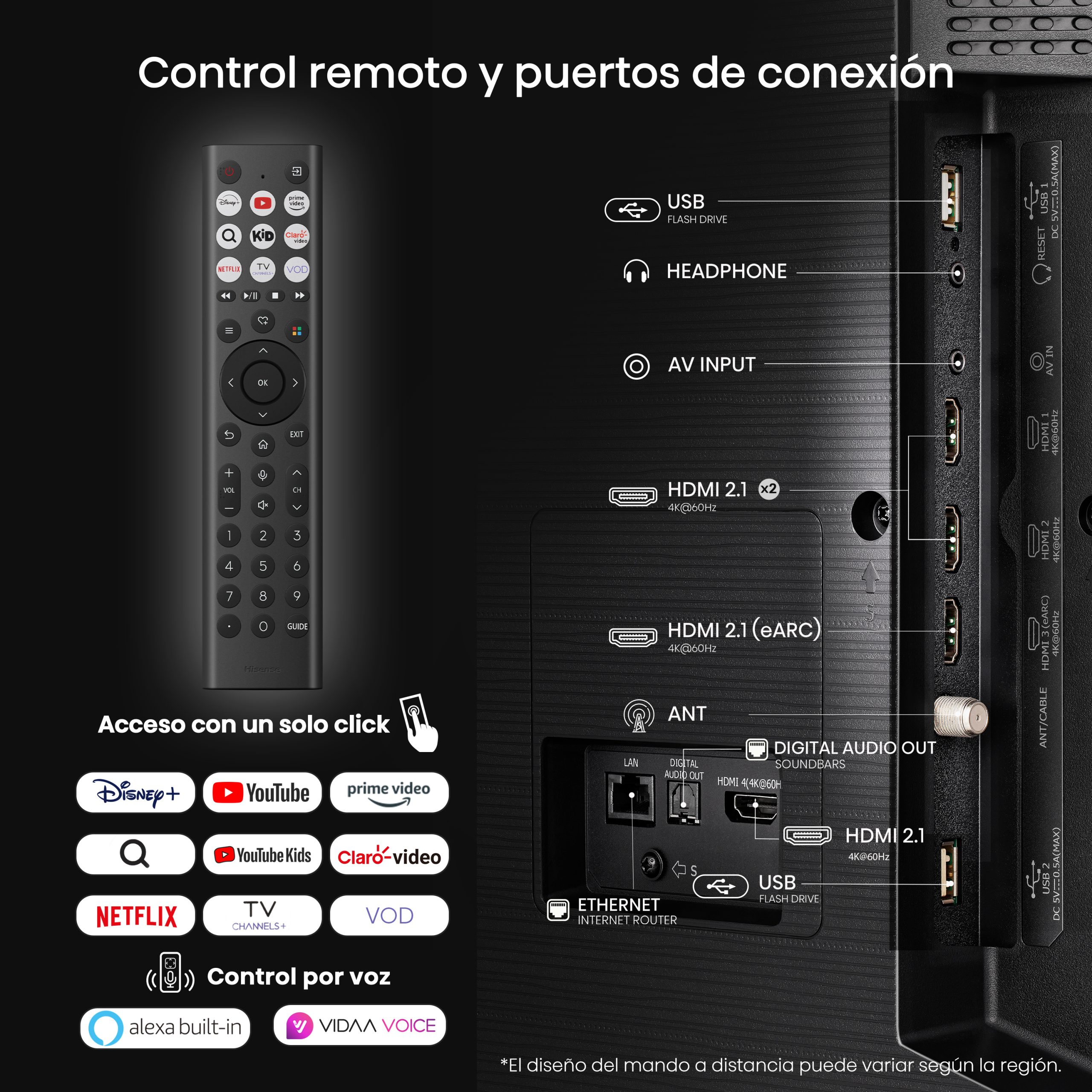 Puertos: 4 HDMI 2.0, USB 2.0 × 2, LAN, óptico