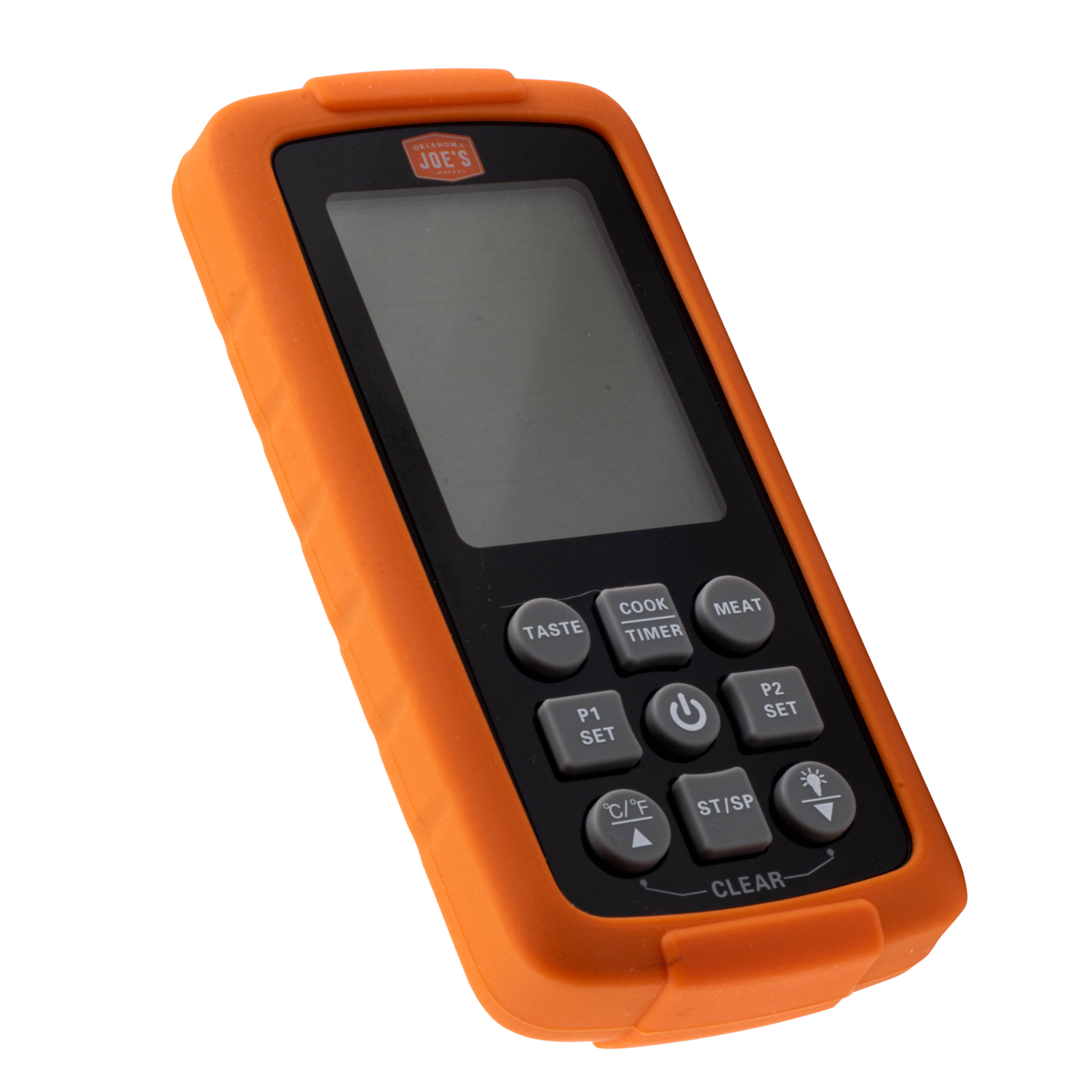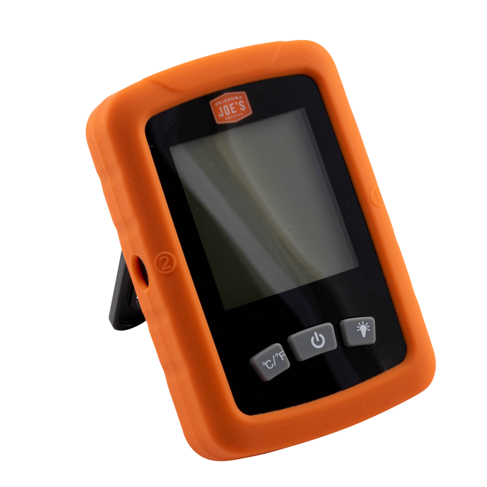 El Termómetro Digital PitPro de Oklahoma Joe’s está diseñado para llevar tu experiencia de ahumado y parrilla al siguiente nivel. Con pantallas retroiluminadas grandes, dos sondas de acero inoxidable y un alcance remoto de hasta 300 pies, te permite monitorear la temperatura de tus carnes y de la cocción con total precisión.