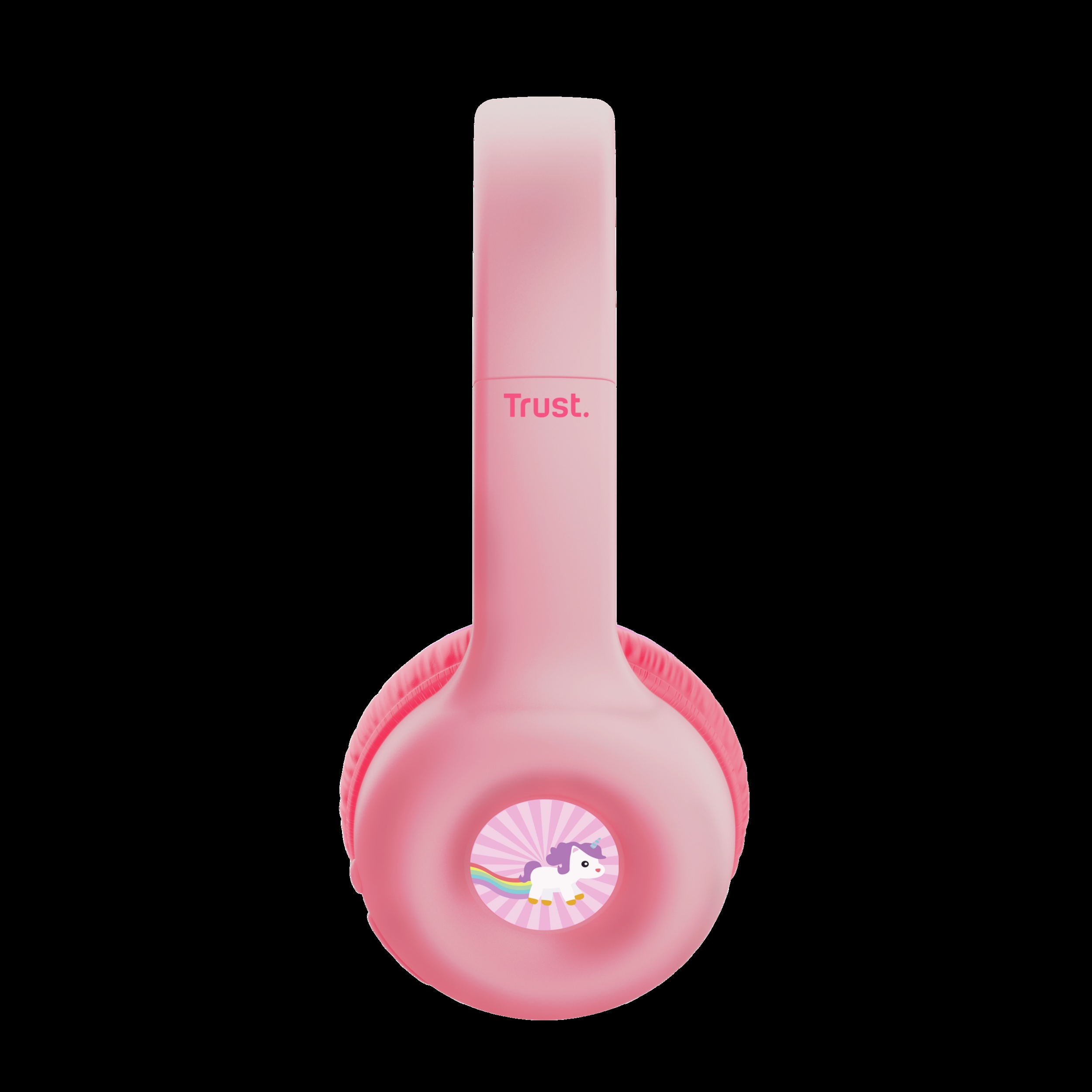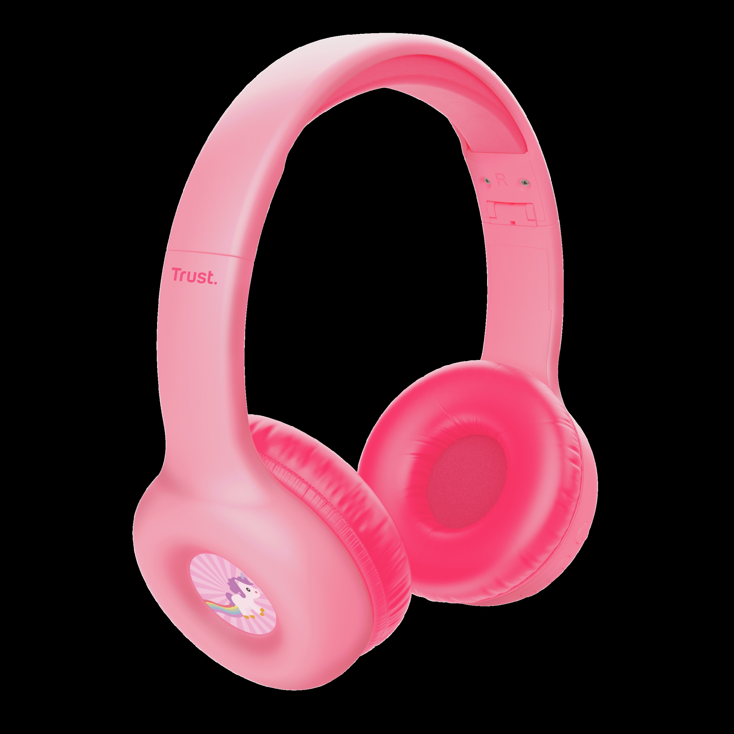 Los audífonos inalámbricos Trust 25274 en color rosado están diseñados especialmente para niños, combinando protección auditiva, comodidad y un enfoque divertido. Incorporan un limitador de volumen que evita niveles de sonido peligrosos, brindando tranquilidad a los padres durante el uso prolongado.