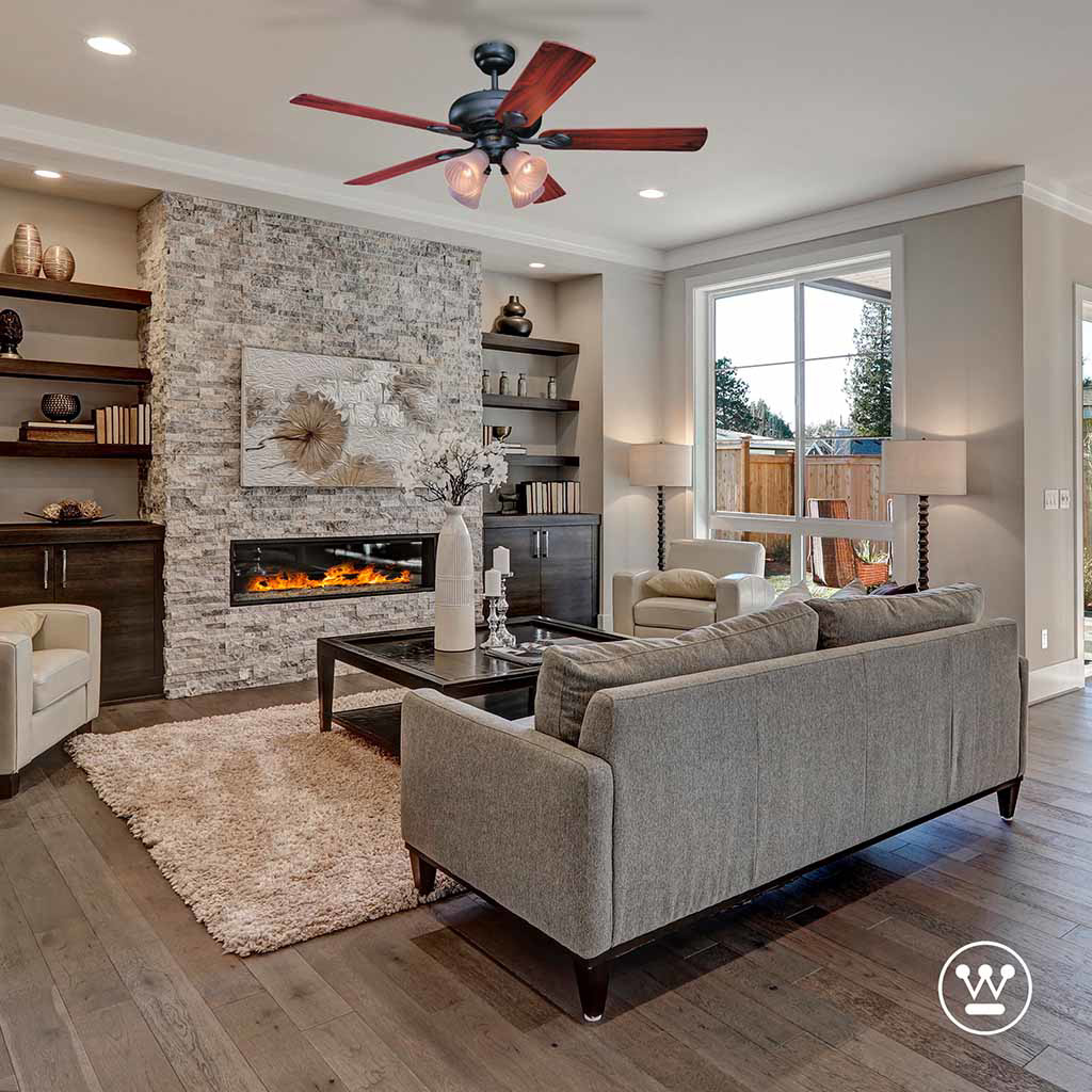Cuenta con 5 aspas reversibles en acabados palo de rosa y nogal, lo que permite adaptar fácilmente su estilo al diseño interior del espacio. Su motor de acero laminado en frío garantiza un rendimiento constante y duradero, generando un flujo de aire de 5 098 CFM.
