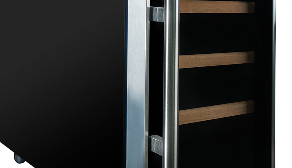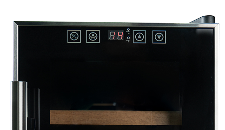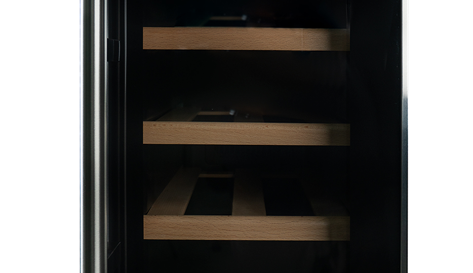 Incorpora un marco delgado en acero inoxidable que aporta un acabado moderno y sofisticado, junto con iluminación LED blanca que realza el interior sin afectar la calidad del vino. El control digital facilita el ajuste preciso de la temperatura mínima de 8 °C, mientras que los estantes de madera brindan soporte adecuado y una presentación elegante. Su formato compacto la convierte en una excelente opción para colocar sobre mesas, barras o muebles auxiliares.