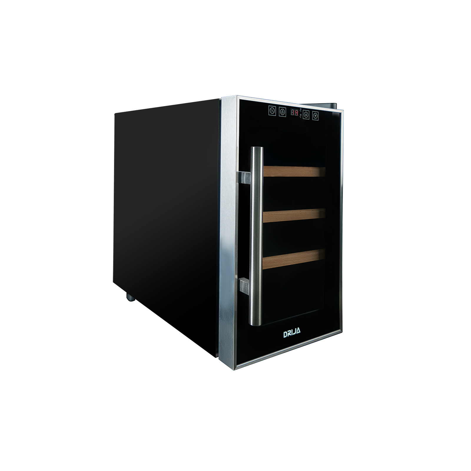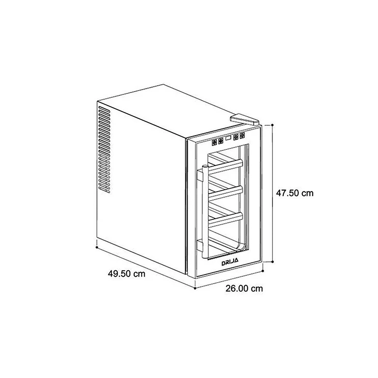 La vinera de mesa Drija Rosso 8 es ideal para quienes desean conservar sus vinos en condiciones óptimas sin ocupar demasiado espacio. Su capacidad para 8 botellas y su sistema termoeléctrico permiten mantener una temperatura estable y silenciosa, perfecta para uso doméstico o espacios sociales reducidos.