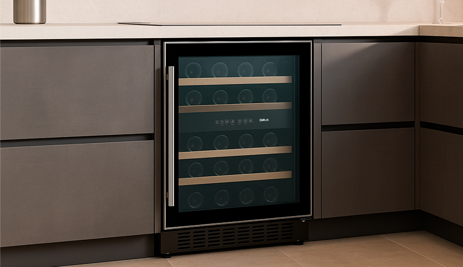 La vinera empotrable Drija CIRO 46 es ideal para quienes buscan conservación profesional en un formato compacto y elegante. Su marco delgado en acero inoxidable 304 y manilla de acero permiten una integración sobria y moderna en cocinas y áreas sociales.