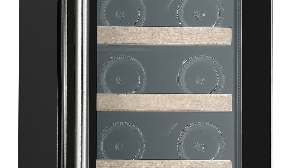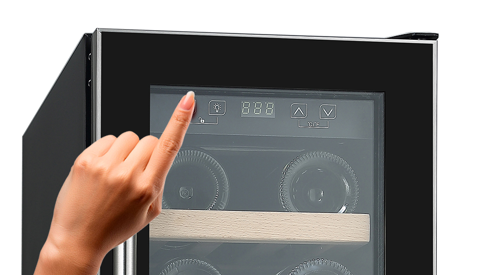Cuenta con marco delgado en acero inoxidable, manilla metálica y estantes de madera que aportan una presentación sofisticada y funcional. El control digital permite ajustar fácilmente la temperatura, mientras que la iluminación LED azul de luz fría realza el interior sin afectar la calidad del vino. Utiliza refrigerante R600A, que mejora la eficiencia energética hasta en un 25% y cuida el medio ambiente, respaldado además por una garantía extendida de 10 años en el compresor.