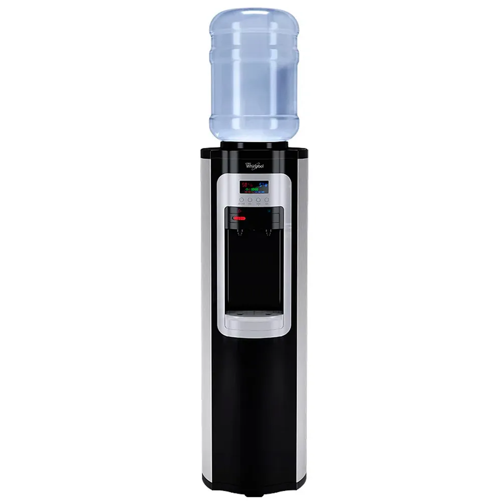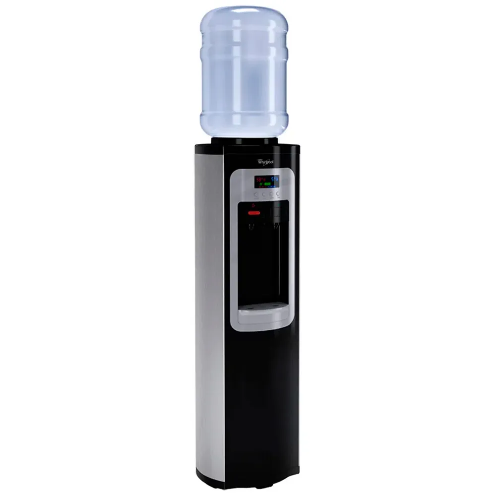 El Whirlpool WK5911BS es un dispensador de agua práctico y eficiente para hogares y oficinas, diseñado para ofrecer agua fría y caliente con solo presionar un botón. Su sistema de enfriamiento permite enfriar hasta 2 L/h a aproximadamente 10 °C, ideal para mantener agua fresca en todo momento.
