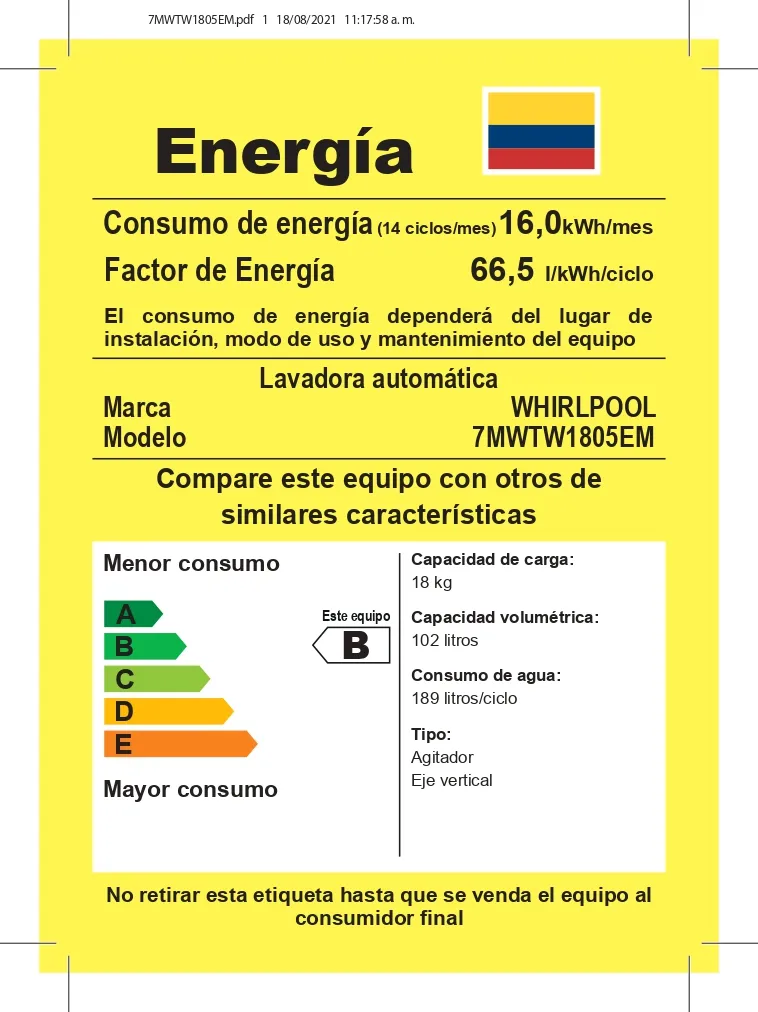 Si el cliente busca una lavadora con agitador potente, respaldo tecnológico y eficiencia en consumo de agua, esta Whirlpool 18 kg es una excelente decisión. Ofrece equilibrio entre capacidad, desempeño y cuidado de la ropa.