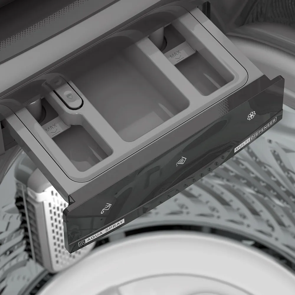 Su multidispensador automático admite detergente en polvo, detergente líquido y suavizante, liberándolos en el momento preciso del ciclo. La canasta 100% de acero inoxidable garantiza durabilidad, mayor higiene y cuidado superior para la ropa.